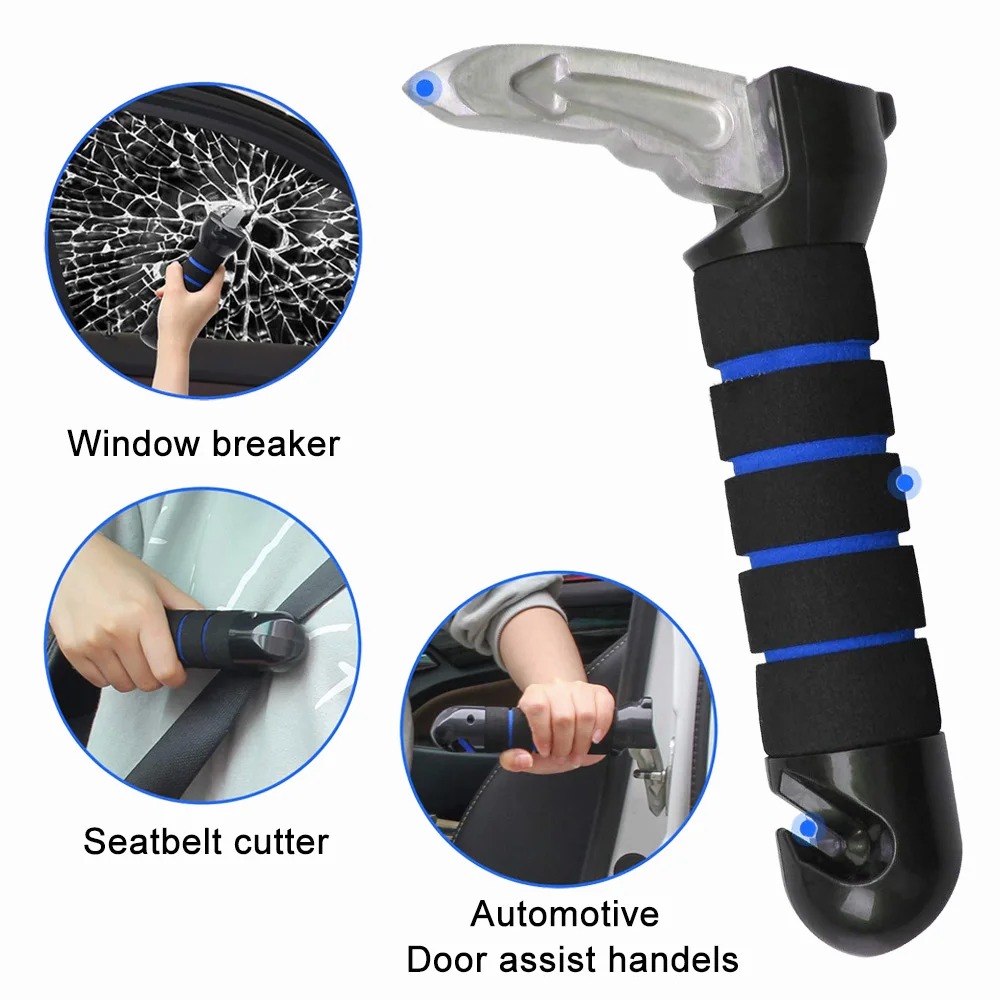 Hardened Steel Window Breaker: Designed to shatter side windows quickly in emergency situations.