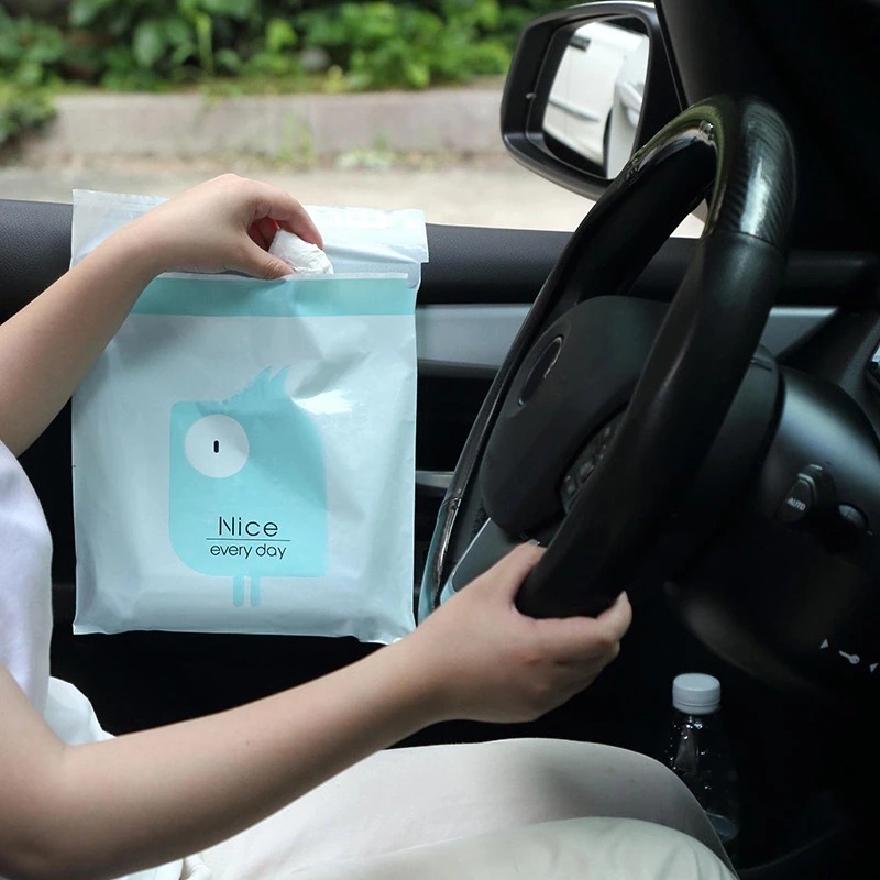 CONVENIENT ADHESIVE BAGS. Compared to trash cans, it can save a lot of room or space. Best choice for long-distance travel of family with children. You can use it as vomiting bag! No need to wash or clean every time after use. Disposable, just throw it right away.