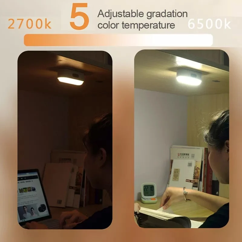 This motion-sensitive night light innovatively applies human body passive infrared (PIR). Automatically activates to provide soft, eye-friendly glow of light when you pass within 5 metres. Guides you to safely walk across dim rooms / hallways in the dark with certain visibility.Features stepless dimming technology – That offers you a complete control (0%-100%) of the amount & light instead of fixed brightness levels. Also you can switch between 5 color temperatures without turning off light – Customize the room’s ambient mood in an energy-saving, efficient way!Our magnetic design makes it perfect to be installed anywhere! Use magnetic plate and attach it to bedside, stairway, cabinet, cupboard, sofa, furniture etc. And it’s rechargeable – A 2-hour full charge offers 90-day continuous operation!