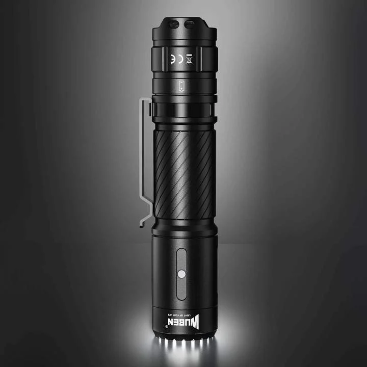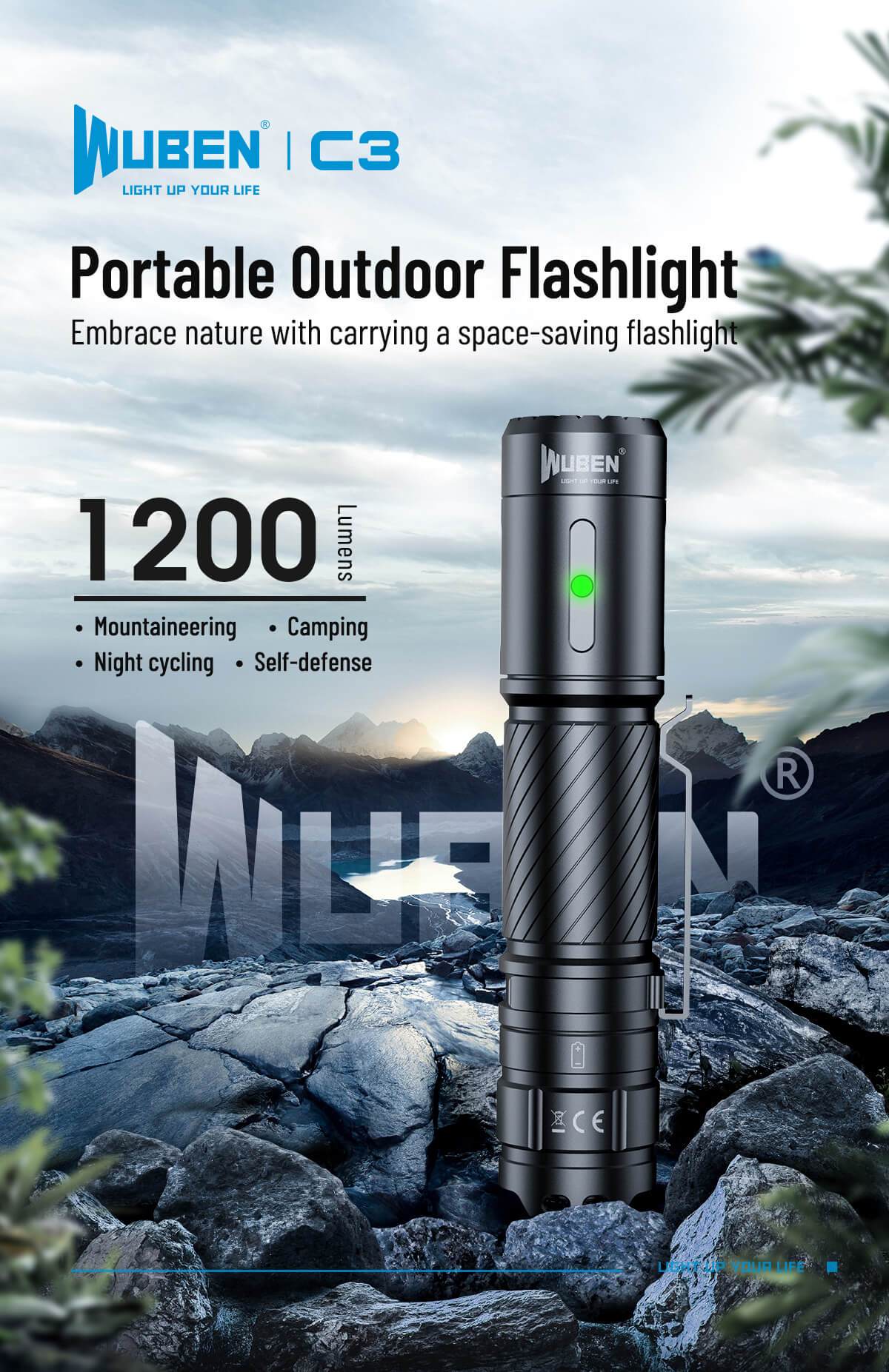 WUBEN powerful 1200 lumens flashlight uses a convex lens to improve overall brightness; A spiral pattern lamp head increases flood angle while protecting the lens. Equipped with an OSRAM P9 LED, with a maximum brightness output of 1200 lumens. 6 modes replace the need for multiple flashlights (high, medium, low, Eco-friendly, Strobe, SOS), Make it a practical addition to any home or emergency kit.