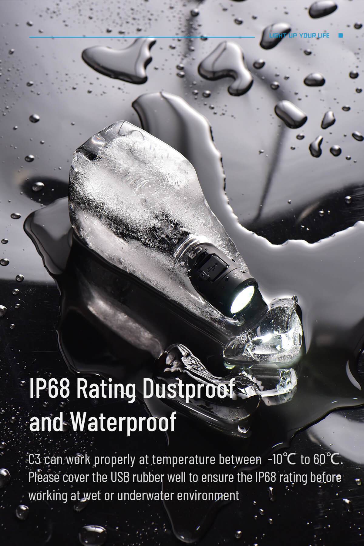 It is powered by one 18650 battery and is compatible with 2 CR123A batteries. It uses an anti-reverse circuit and convenient Type-C interface direct charging technology, and uses a 5V / 2A Type-C interface cable to quickly charge the flashlight. Charging is faster than the micro-b interface, and the charging time is about 3 hours.