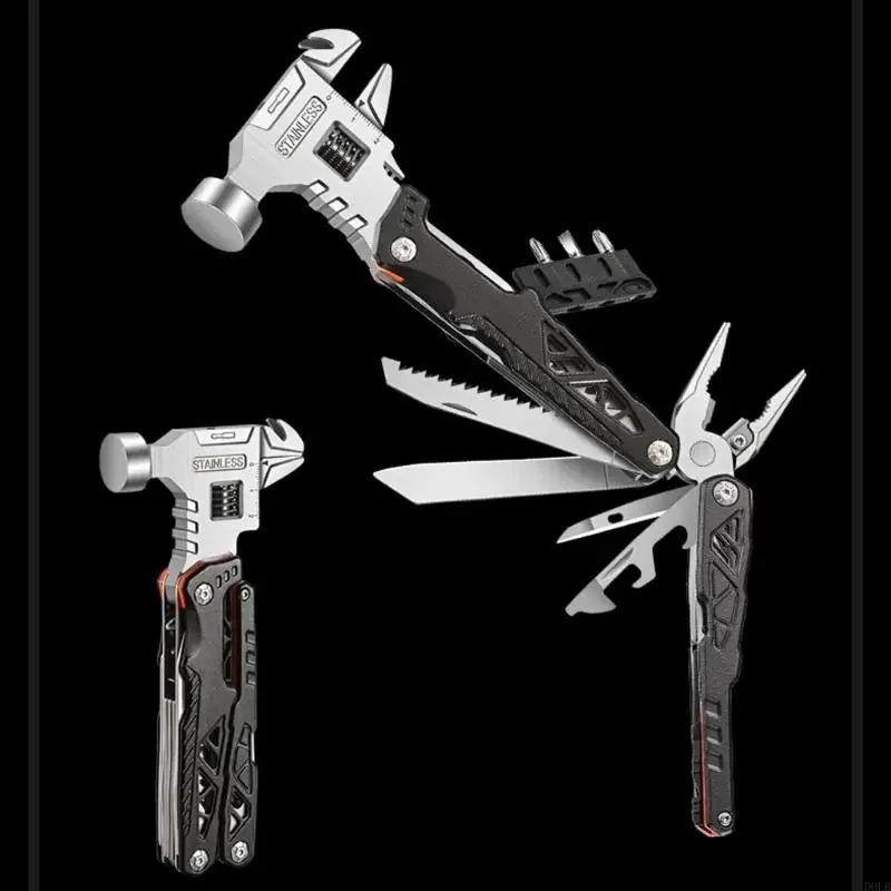 Engineered for versatility and built to last, this compact stainless steel tool combines a hammer, pliers, wrench, knife, saw, screwdriver, and more — all in one sleek, foldable design. Whether you’re fixing, cutting, tightening, or opening, this powerhouse tool has you covered anytime, anywhere.