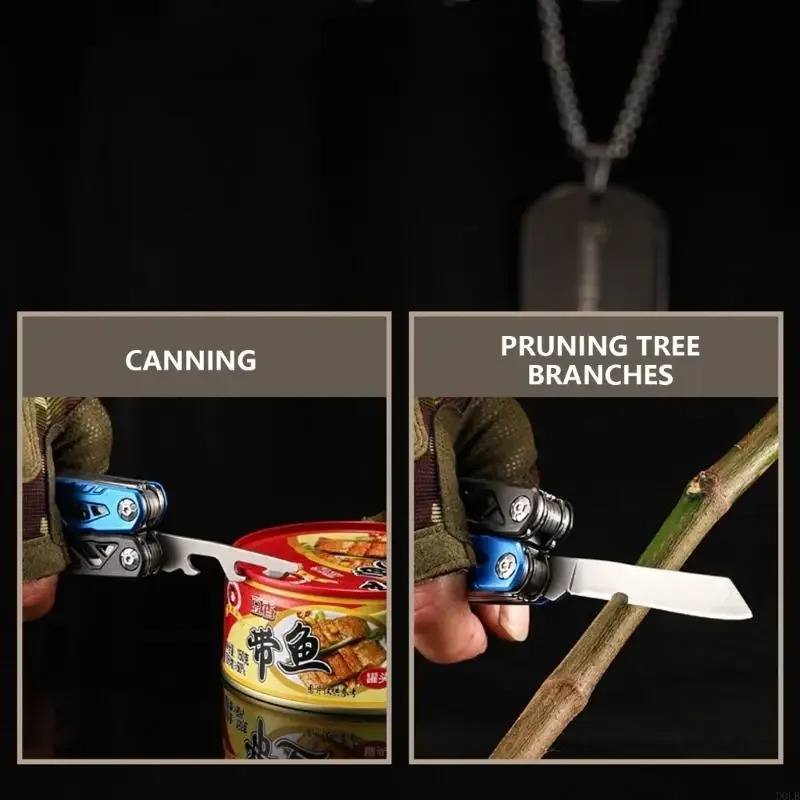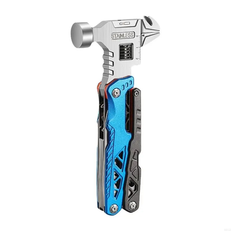 12-in-1 Design: Includes hammer, pliers, knife, saw, screwdriver, wrench, bottle opener, and more.