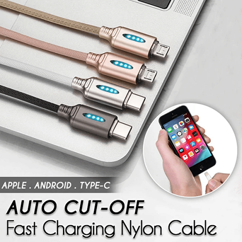 The Auto Cut-off Fast Charging Nylon Cable is a smart cable design which has an auto cut-off function when your phone is fully charged. With the flashing light reminder, you can notify the charging process and enhance charging safety.