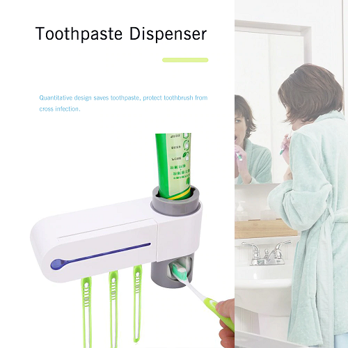 This 2-IN-1 Ultraviolet Toothbrush Disinfector Automatic Toothpaste Distributor are made from Environment-friendly silicone, harmless to toothpaste tube, Dustproof toothbrushes holder with flip cover design, Anti-bacterial and Easy to clean. Toothbrush holder Wall Mount – comes with enhanced adhesive tapes, easy to install the dispenser and the holder on our wall. Non-nail design won’t damage the wall. Hygienic &Economy – Pump every drop toothpaste in tube Keeps everything nice and neat. Great accessory for your bathroom. Way less clutter around the sink.