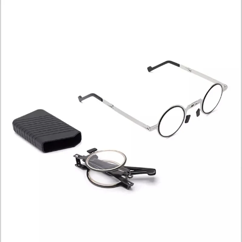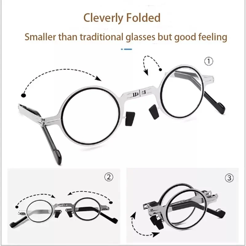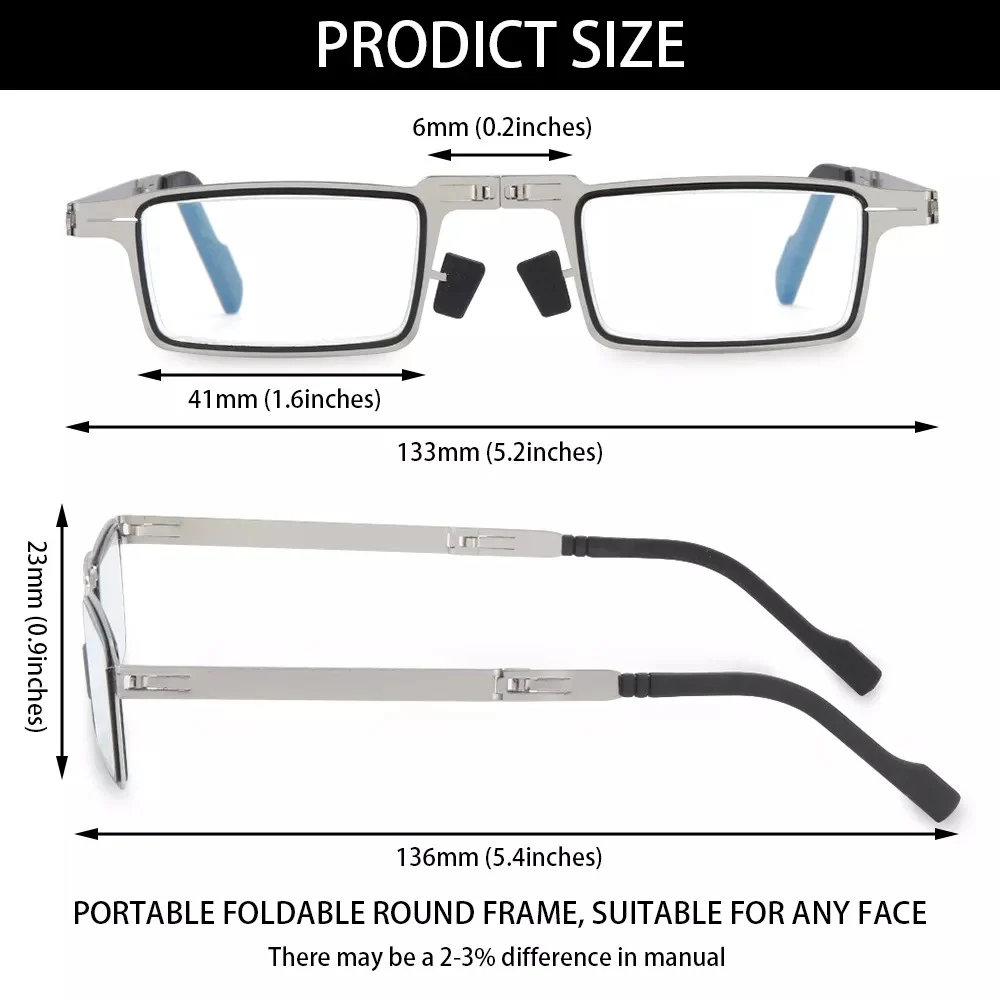 The glasses are made of stainless steel frame and polycarbonate lens,Foldable bridge and telescoping temples for easy folding and compact storage. Lets you take to anywhere.Soft silicone nose pads and flex temples make it possible to fit different faces with eminently comfortable. You will be satisfied with our high quality if you get them!