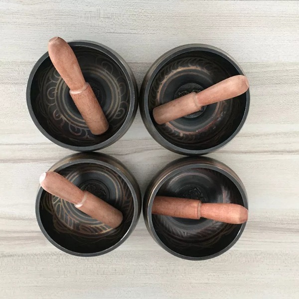 The people of Tibet around the Himalayan Mountains have practiced and perfected the art of sound therapy through the use of Singing Bowls and cymbals. Singing Bowls are indeed shaped in the form of a bowl, made from various metals such as bronze, crystals such as quartz. The bowls are traditionally hand crafted and sound can be described as similar to the strike of a gong or bell but distinctly different in its intensity and duration. Unlike bells or other percussion instruments, the bowl produces sound when the rim is rubbed in a circular manner with a mallet.