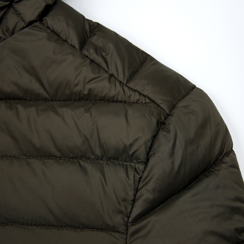 -Ultralight Down Coat Material-Shell: 100% Polyester; Lining: 100% Polyester.Filling: 90% White Duck Down/ 10% Feather. When you receive it, you will feel ultra light but this coat will keep warming in cold winter.