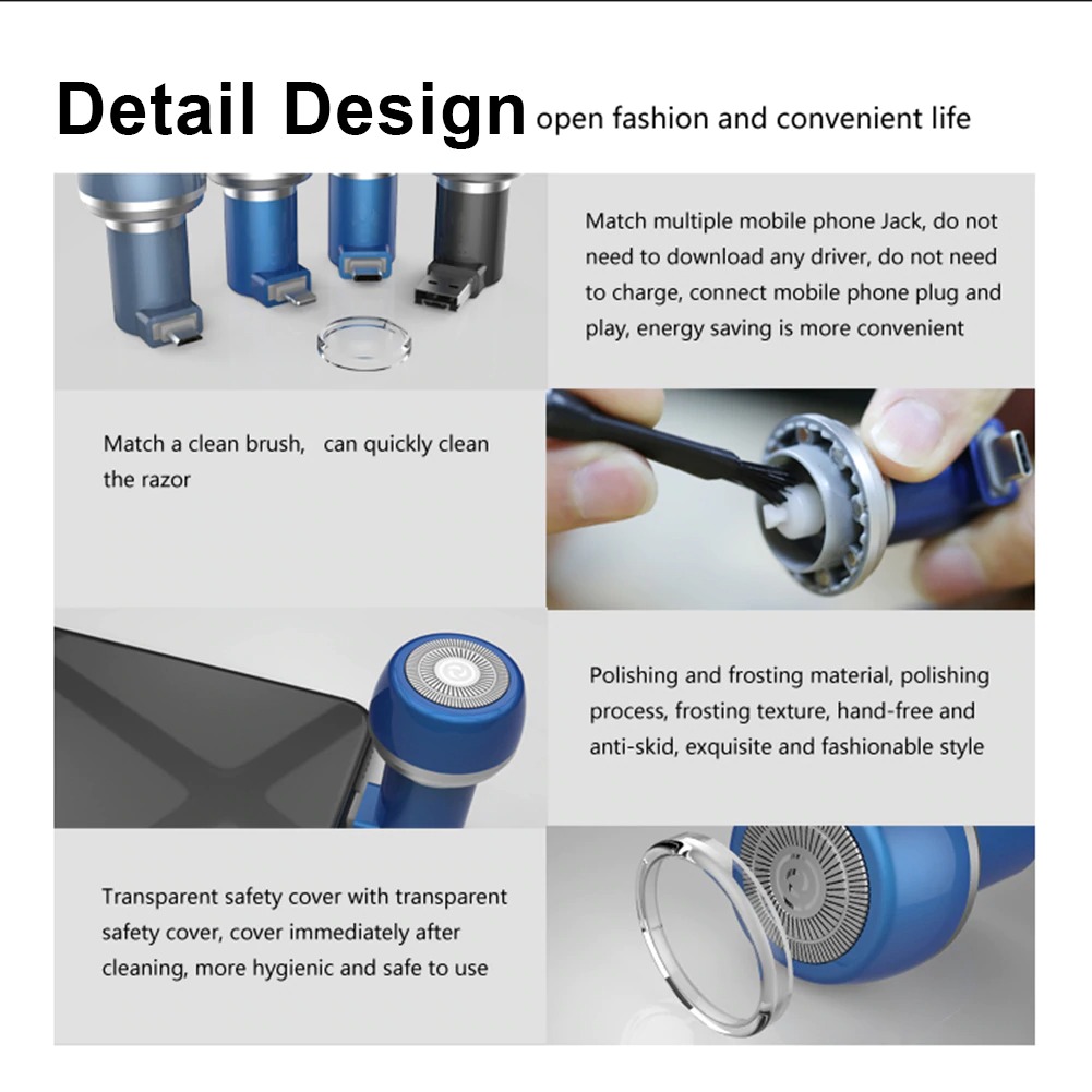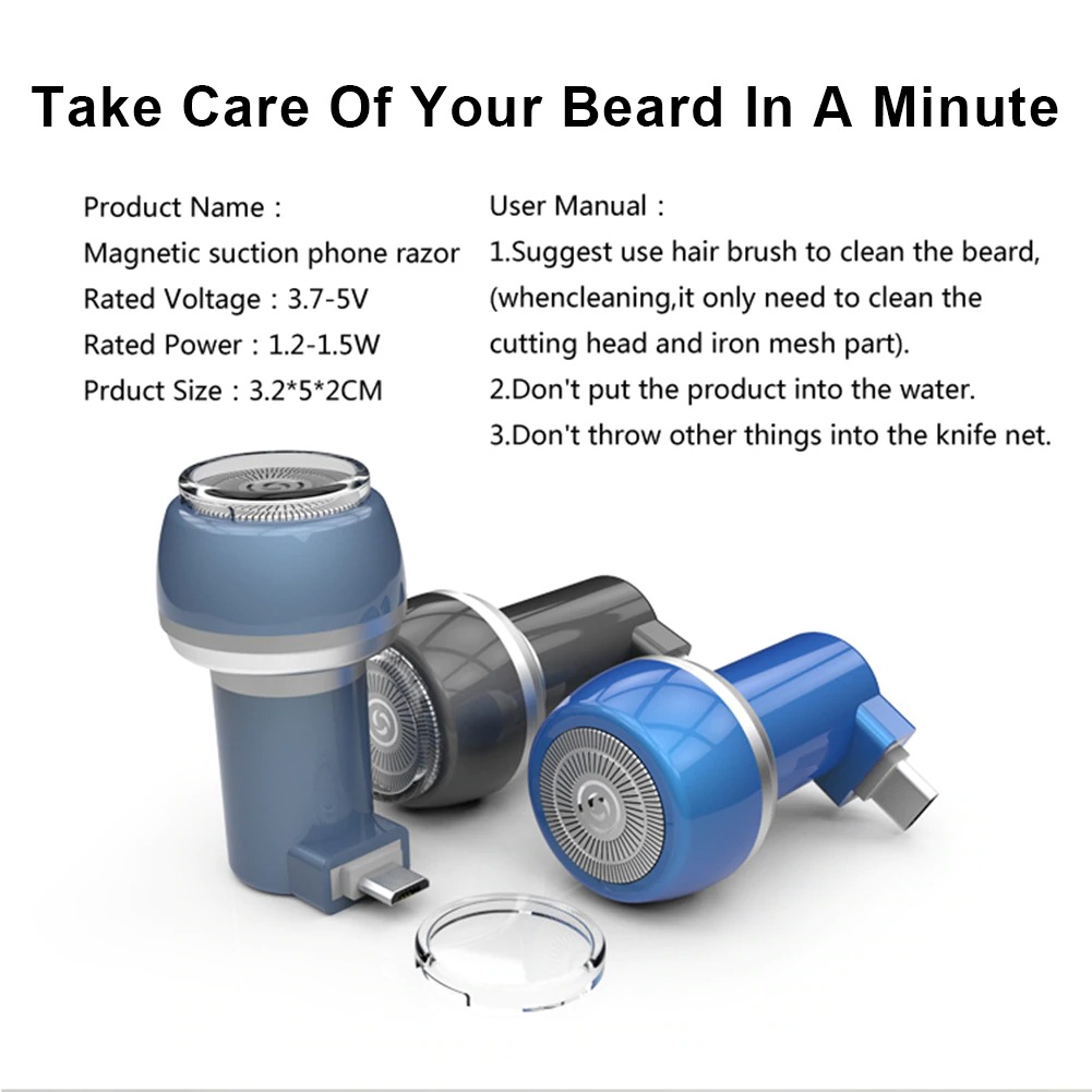 Mobile phone or power bank can supply power to it directly, no more bothered the electric shaver out of power.
