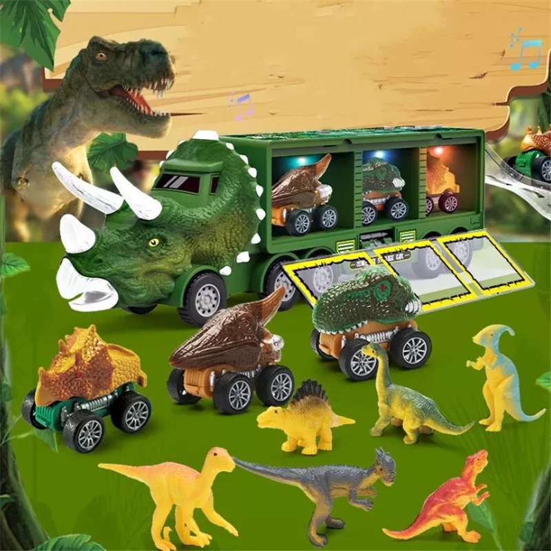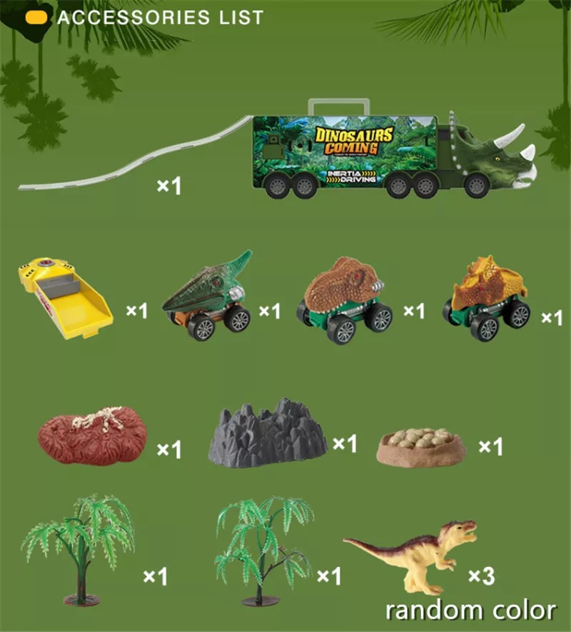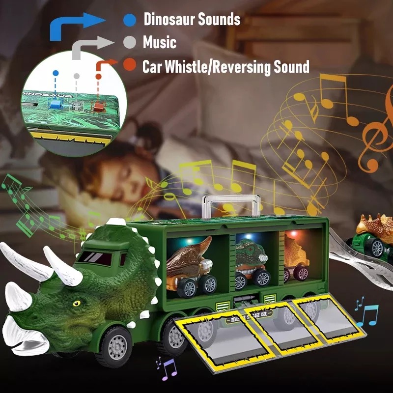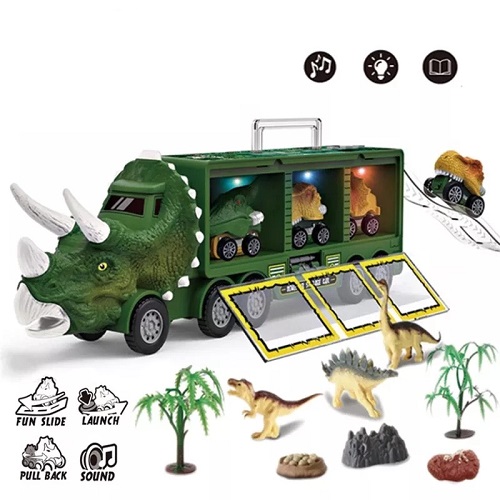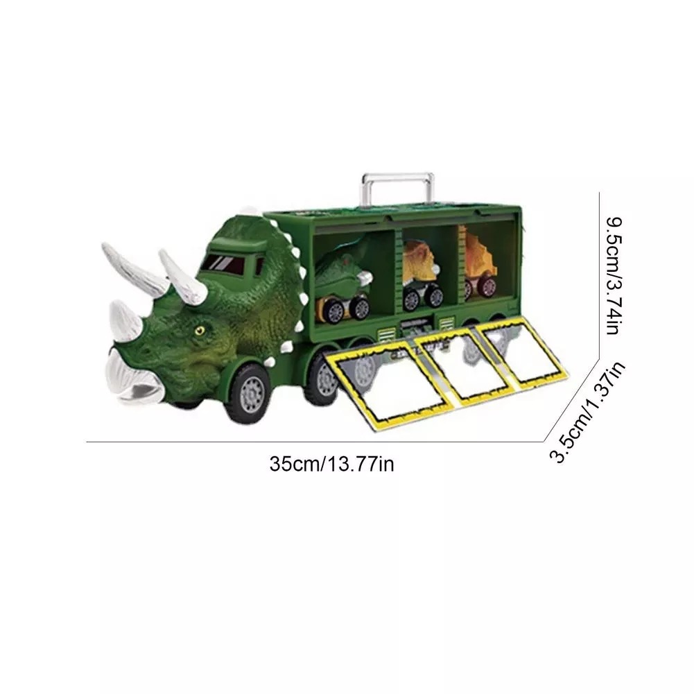 Features three storage spaces of truck can place some dinosaur toys that kids like when playing. Hidden carrying case handle design, easy to hold. The cool dinosaur toys is perfect for kids to load toys up and move them from one area to another.