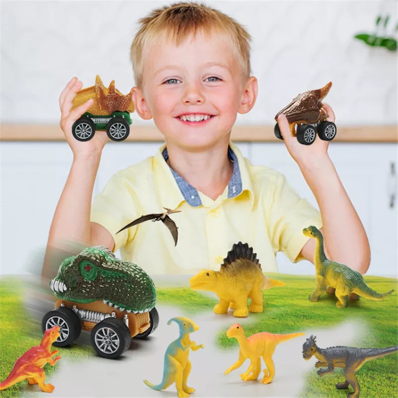 2) Various accessories like pull back cars and dinosaur figures inside bring much more joy