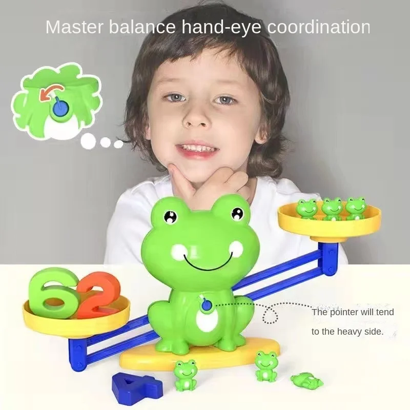 Interactive Learning – Kids can place frogs or numbers on the balance to visualize math problems and improve number recognition.