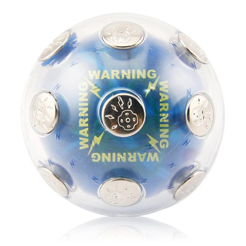Futuristic electrifying game – To activate your little orb of mischief, insert the included activation key into the small hole in the casing and press the power button. The ball will begin producing electric shocks at random intervals every 10-30 seconds. The shock is felt through the metal conductive points scattered across the surface of the orb. When you see the ball glow red, it means the ball is electrified… and you better hope it doesn’t get passed to you!