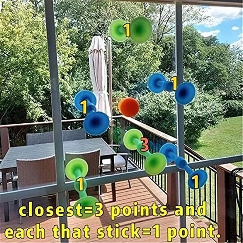 Everyone receives the same number of “dart” toys. At the same distance, throw the “target” toy. closest = 3 points and each that sticks = 1 point.