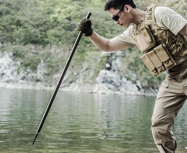 125cm: 6x tube handles, 1x harpoon/sickle, 1x knife/scaler, 1x saw/tooth, 1x flat cover/flint rod, 1x female to female connector, 1x tungsten steel tip