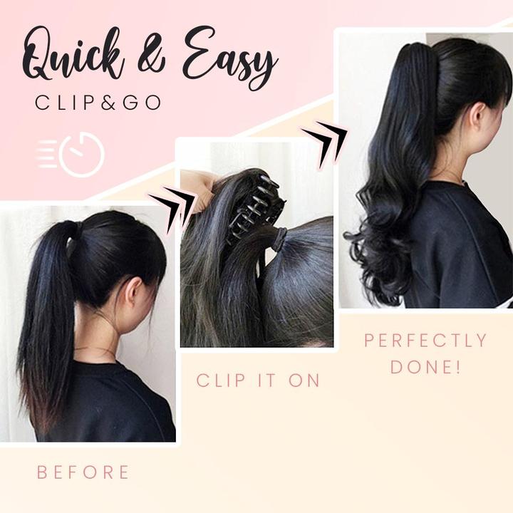 Simply put it on with the built-in claw clip to get a fabulous ponytail in seconds!