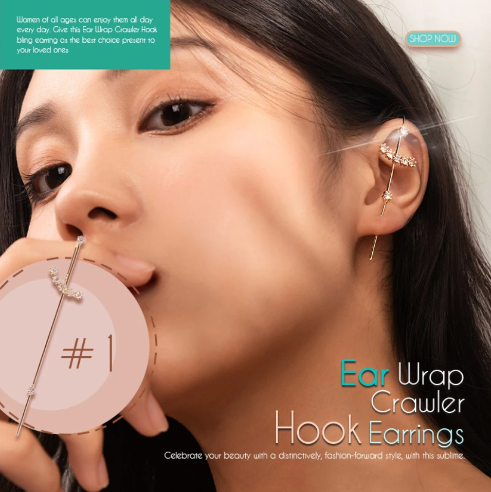Women of all ages can enjoy them all day every day. Give this Ear Wrap Crawler Hook bling earring as the best choice present to your loved ones, make them feel very special and charming.