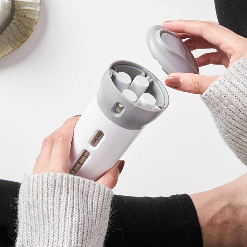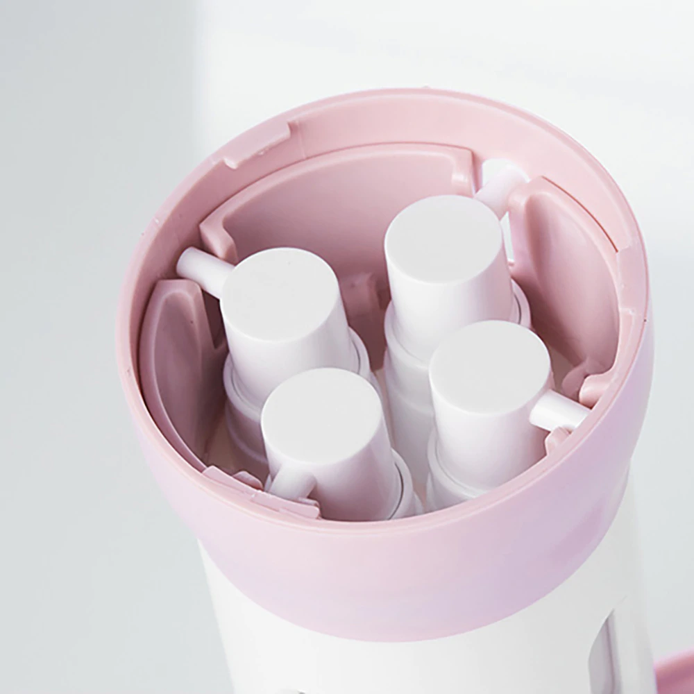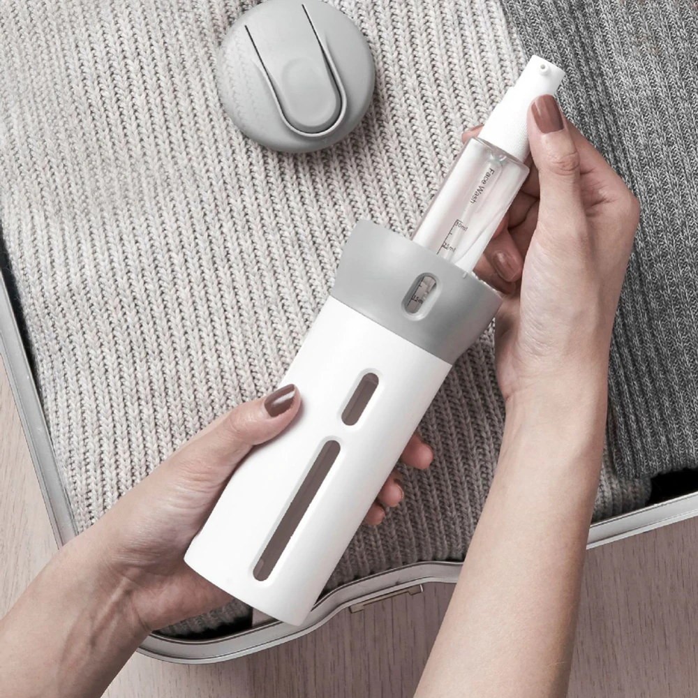 Instantly access travel bottles. Streamline the way you stay fresh on your travels with the smart 4-in-1 Lotion Shampoo Gel Travel Dispenser! Simply rotate the top and get instant access to shampoos, conditioners, lotions, body wash, serums, hand sanitizers, and more.