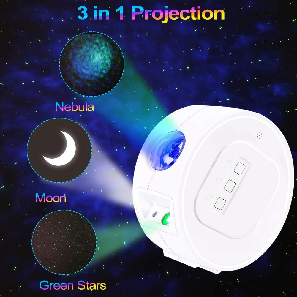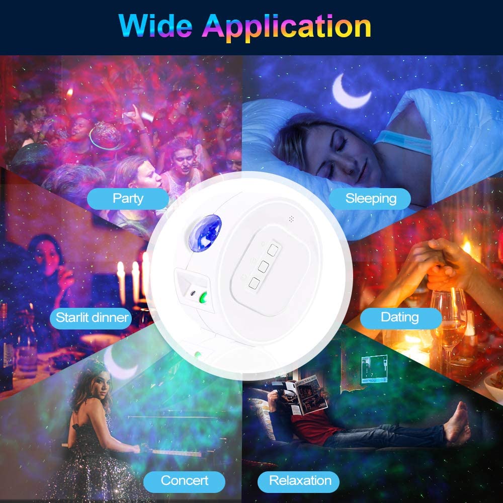 Create your own personal galaxy and relax as you wander through the stars. AsterNebula Laser Projector displays a realistic starry night sky onto the walls and ceiling.