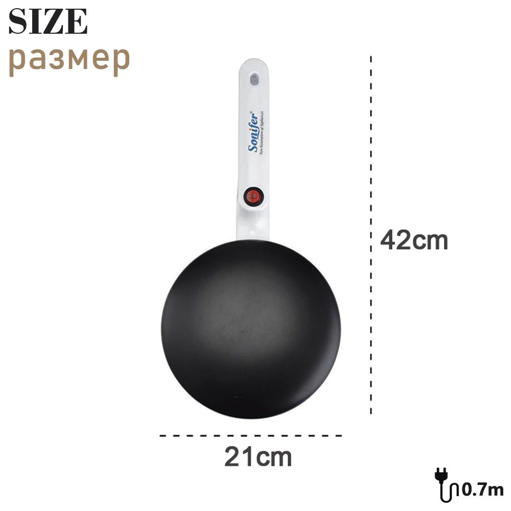 Comes with the automatic temperature controller to preventing burning. Operated by the one press button ON/OFF Switch to indicate when the surface is hot enough to begin cooking. Intimate long big handle design for easy holding and saves space.