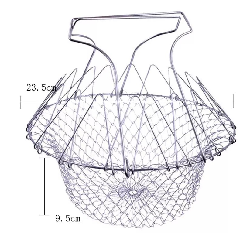 Foldable Cooking BasketA clever gadget that transforms itself for dozens of everyday use. Use it to boil, steam, deep fry, blanch, steam, rinse, and drain. The best part is, it folds flat for easy storage.