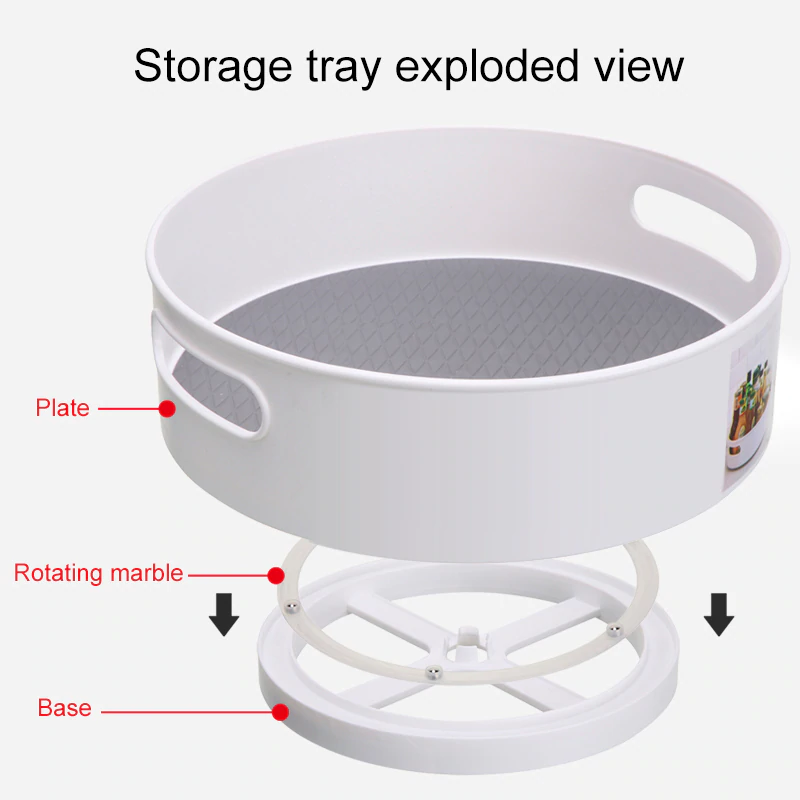 Rimmed edge: the tall, outer rim walls prevent items from falling off and help to keep items in place while rotating