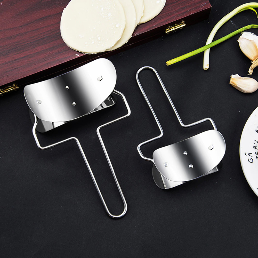This is a set of home kitchen dumpling moulds and peelers that fill, fold and press down on a perfect dumpling. Make dumplings quickly and easily. With the Dumpling Mould, there will be no more ugly dumplings!