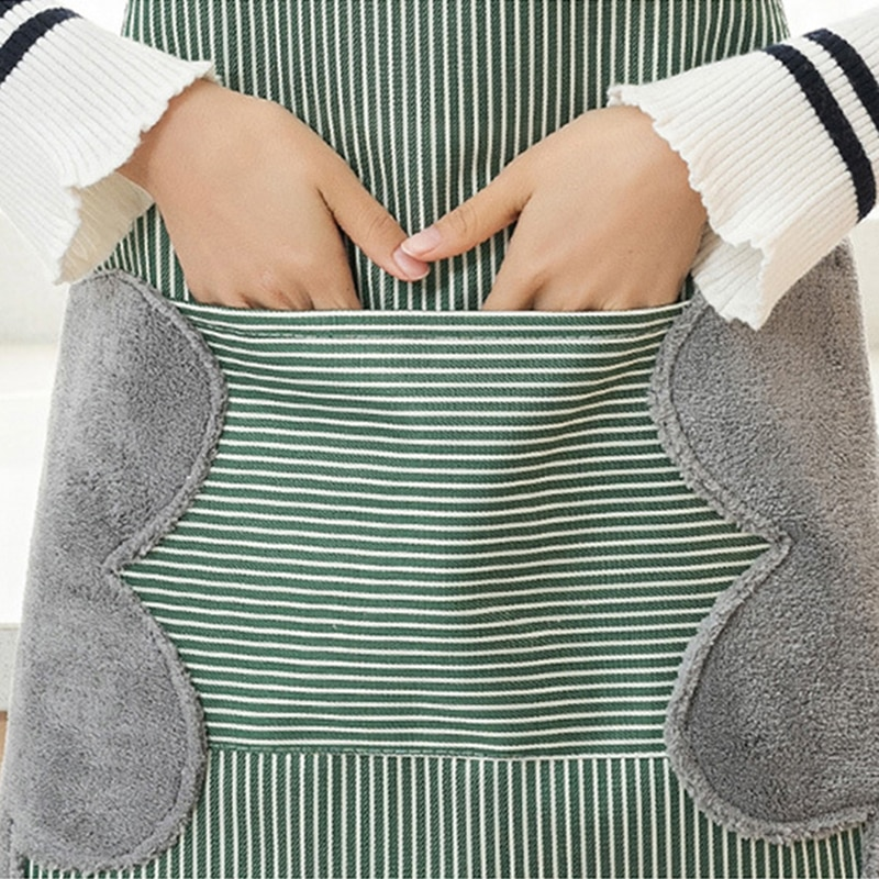 Large Capacity Pocket: The spacious front pocket of the apron gives you a place to hold onto your mobile phone or many kitchen tools like a spoon, seasoning packets, and recipe cards, etc.