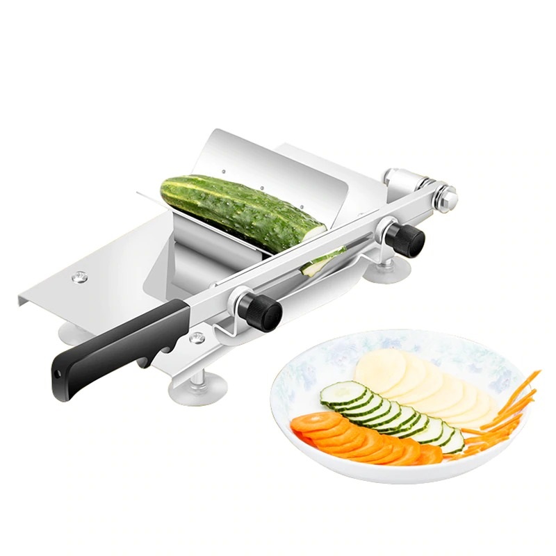 The Ultimate Meat Chef Slicer helps to efficiently slice frozen and thawed meat, such as beef, lamb, chicken, ham and fish for a variety of purposes including making hotpot, sukiyaki, pizza topping, sandwiches or into jerky for treats. It is made of high-quality stainless steel that can be easy to clean and enable for a long time to use.